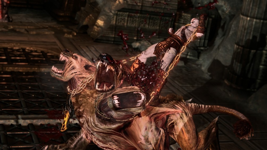 With the advent of the art director taking over the project, this is the best-looking game of the trilogy. The PlayStation 3 edition already matched the quality of the Call of Duty and Uncharted games. The PlayStation 4 edition ups the framerate at a steady 60 per second, minus the cutscenes. The tradition of feeling like a flea in the universe carries over as both the environments and the monsters are expanded in scope. The camera also experiments with the first-person perspective to create new immersions like with the death of Poseidon: